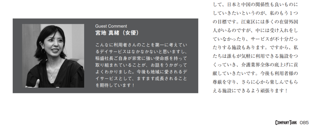 躍進企業応援マガジンカンパニータンクは、さまざまな業種において経営者の生の声を届ける、経営者のための雑誌です。 この雑誌内にてコラムをお持ちの宮地真緒さんが取材に来てくださいました。 今回はその記事の一部を掲載させていただきます。 Follow me!